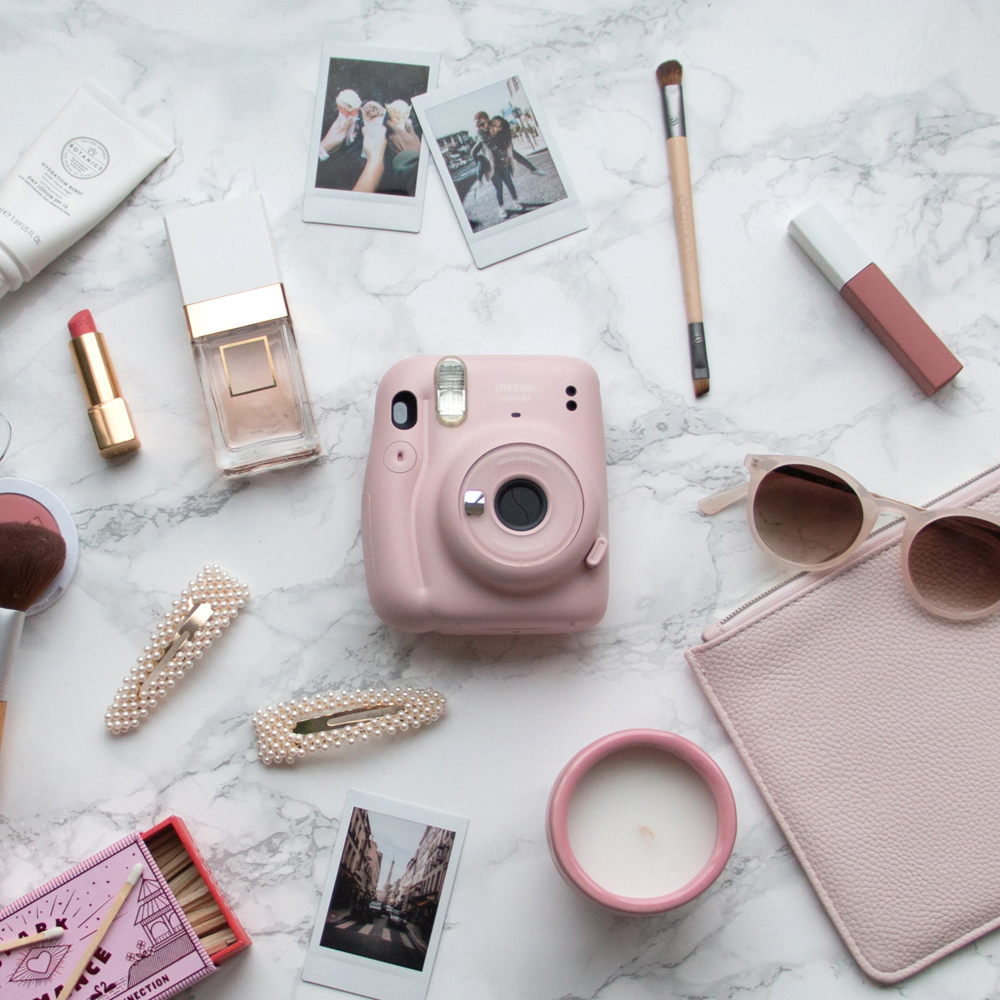 De instax mini 11 camera is beschikbaar in vijf fraaie en zachte kleuren: Sky Blue, Lilac Purple, Ice White, Charcoal Grey en Blush Pink.